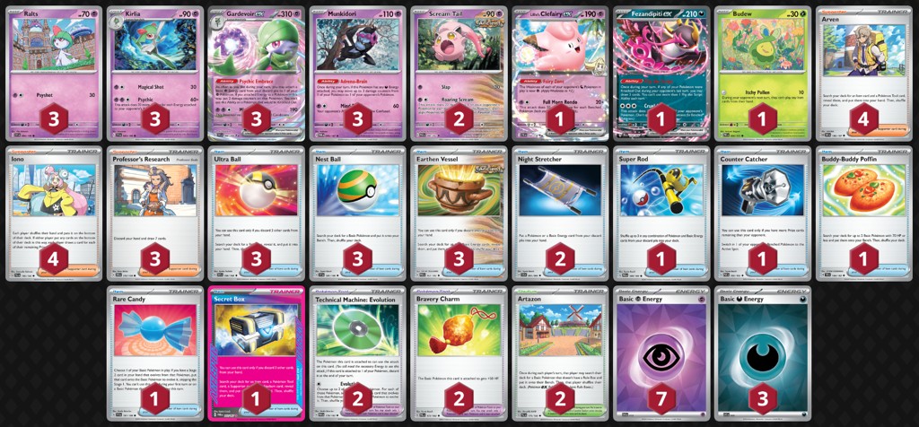 As you may know, I recently got Top 8 at the Portland Regional Championships with a Gardy list reliant on Technical Machine: Evolution. I decided to play this list over something more common like Brent Tonnisson’s, which I had played in Milwaukee, as I felt the Pult Noir matchup was not very favored, and benching Cleffa to get out of dead hands felt really bad in a lot of situations. To remedy this, I started with the Brazilian 60 from Santiago, which utilized a 3-3-3 Gardevoir line, TM: Evos, and Arvens, in order to set up two Gardevoir ex almost every game, which Dragapult decks currently cannot handle. With only a 3-2-2 list, and no non-item search, Brent’s list struggled to get set up before Pult Noir could wipe the entire Ralts line from your board. The other advantage of this list was Arven making more hands live, as you could get Secret Box to get a Supporter for the next turn. With this, my two issues from Brent’s 60 were solved, so I moved forward to refining the list they played.